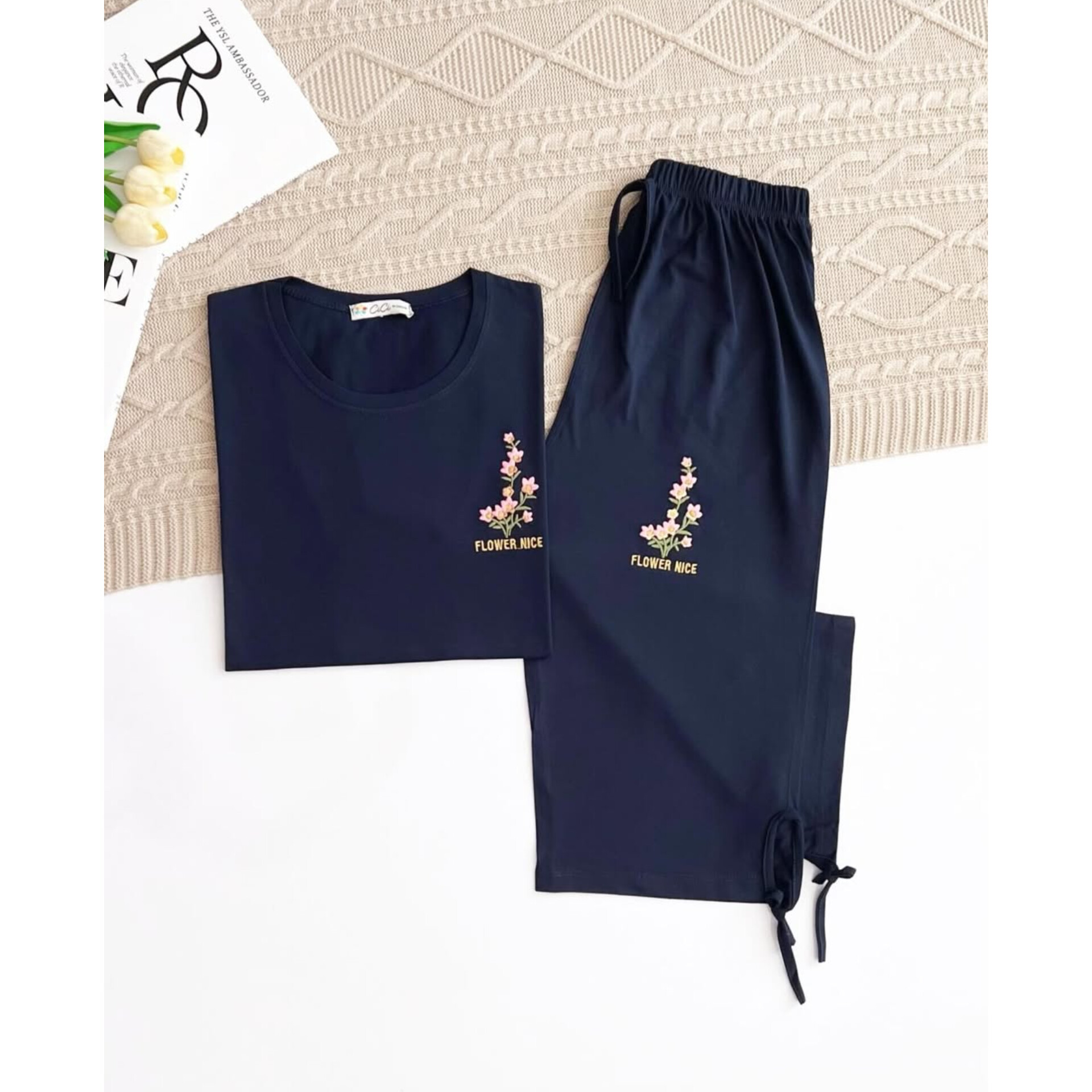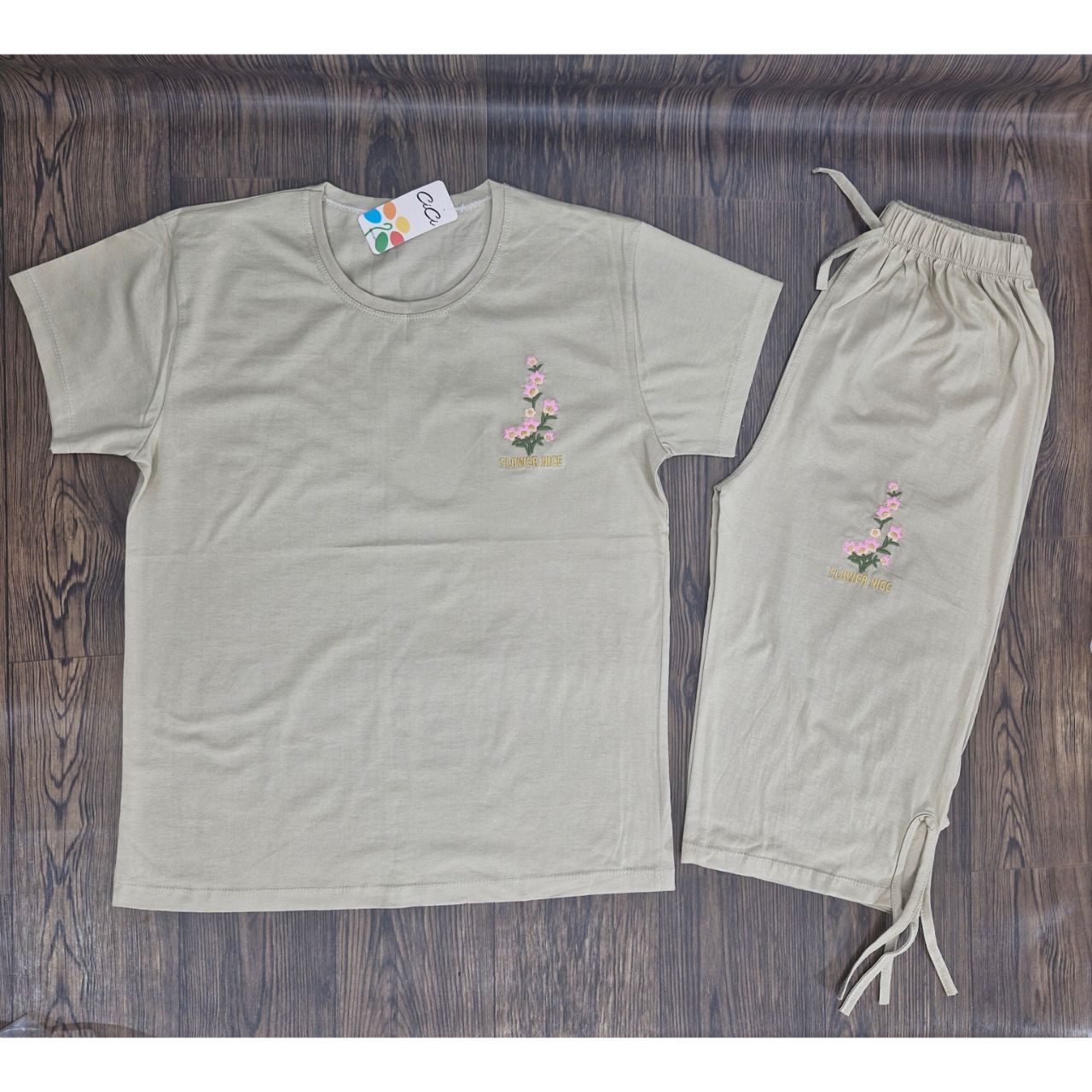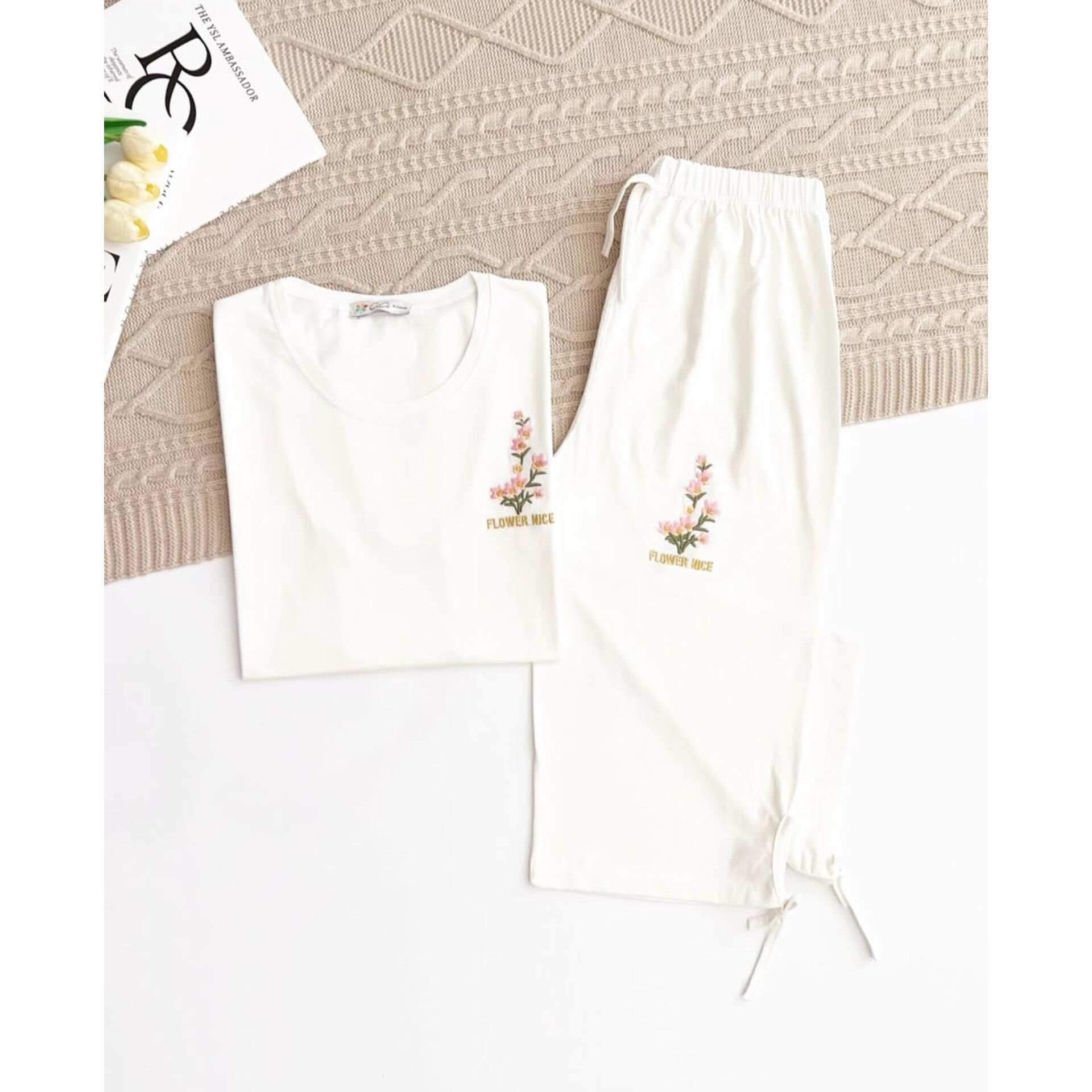 ست تیشرت شلوارک راحتی با گلدوزی ظریف🌸