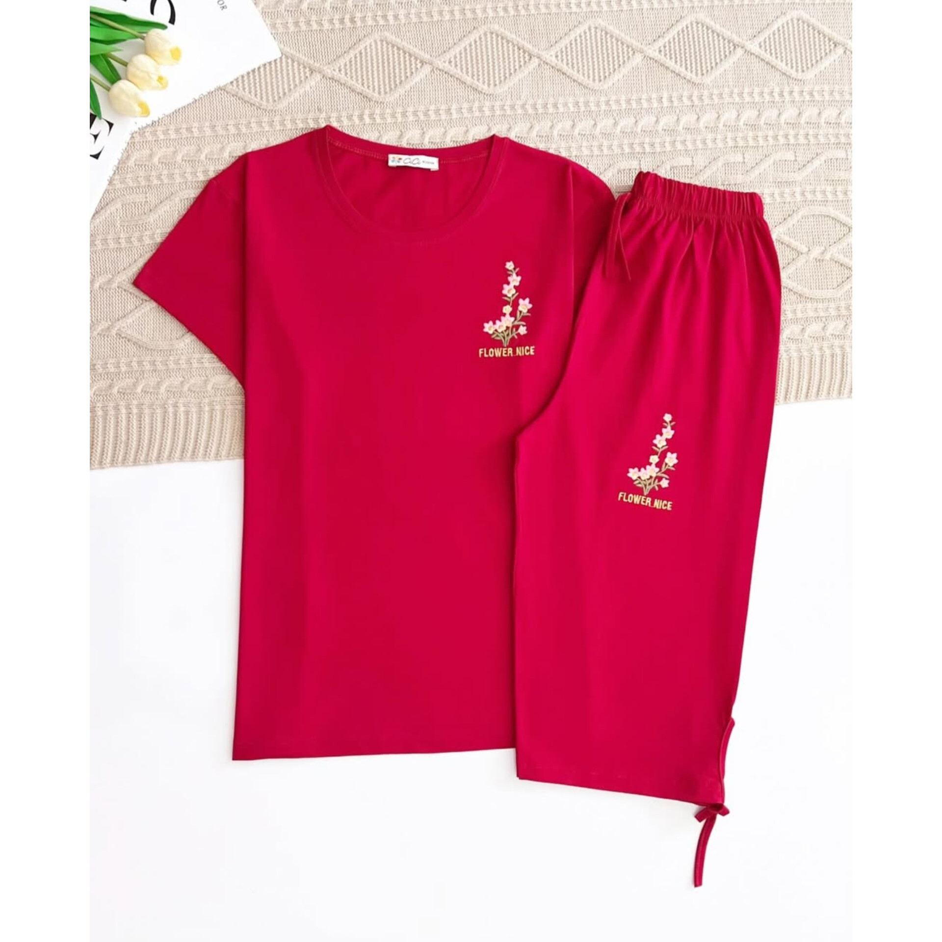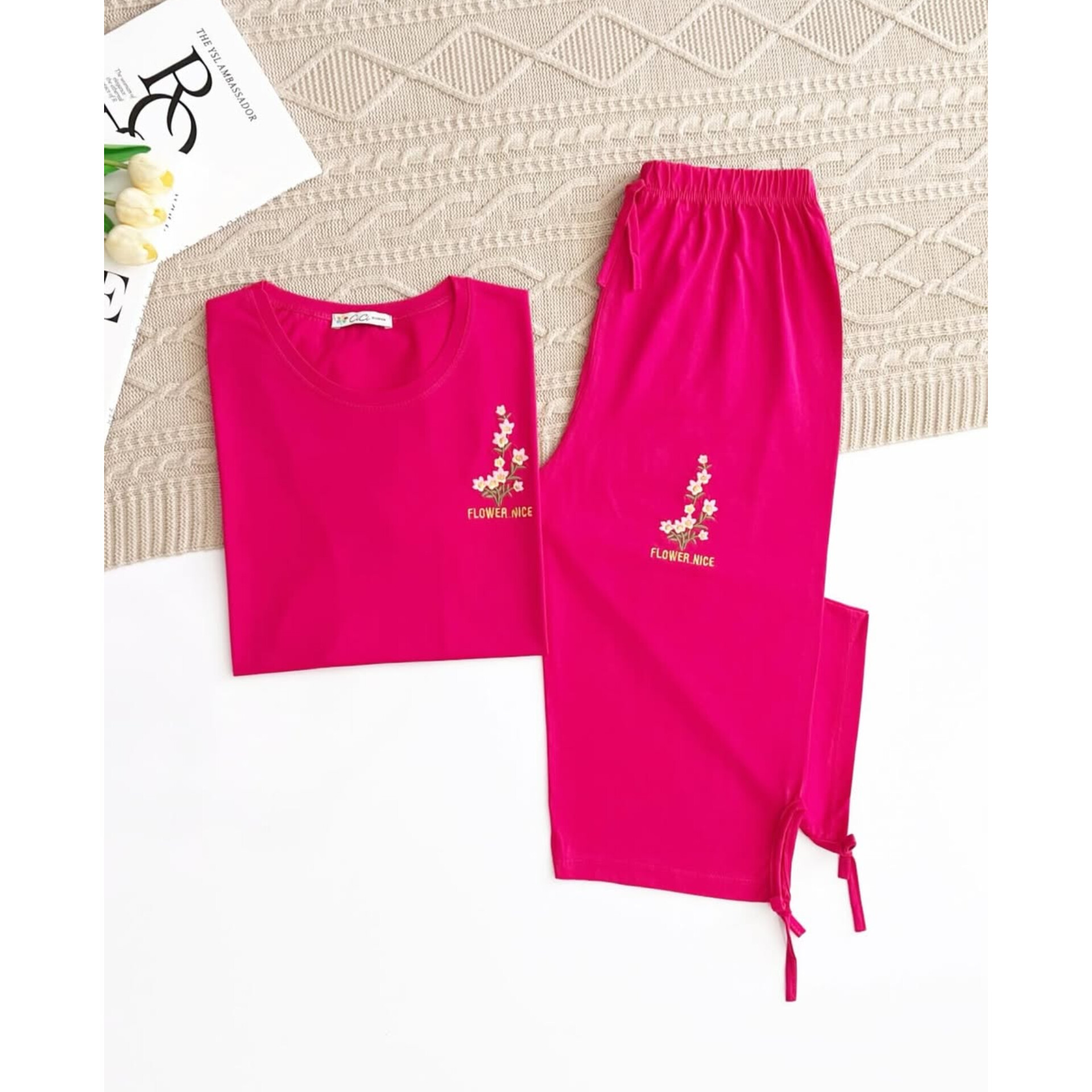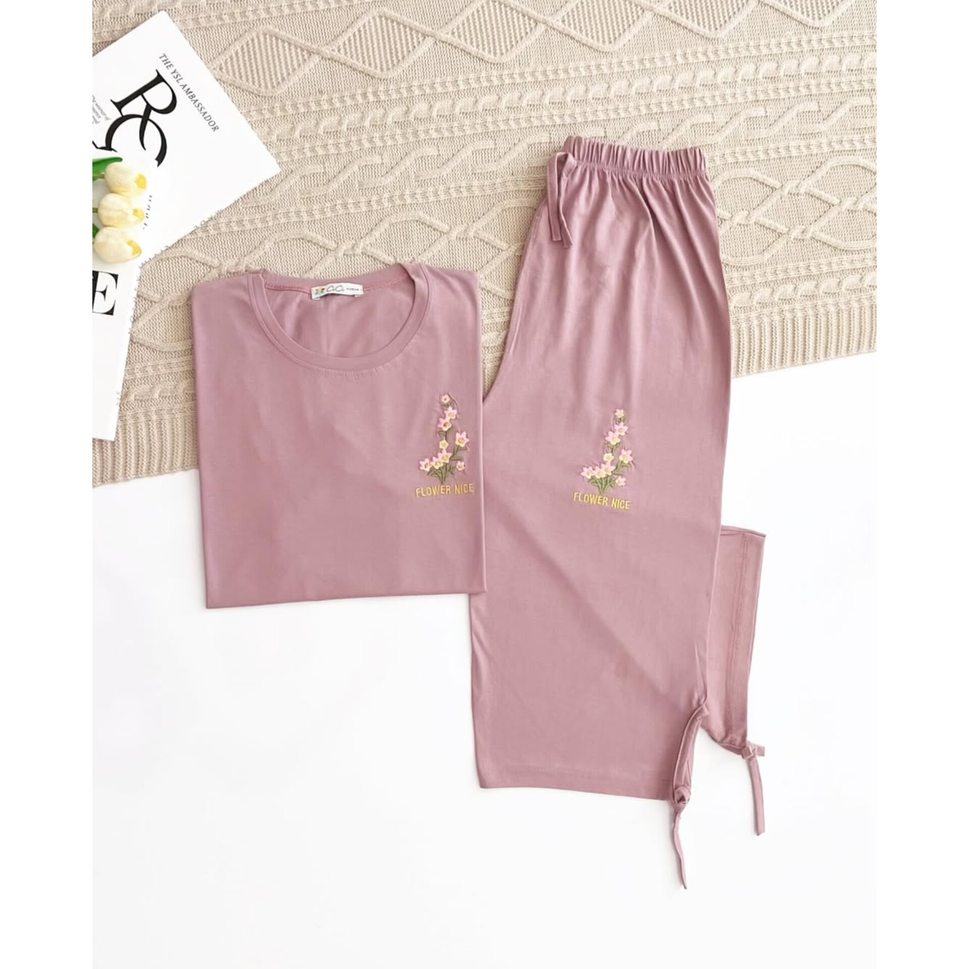 ست تیشرت شلوارک راحتی با گلدوزی ظریف🌸