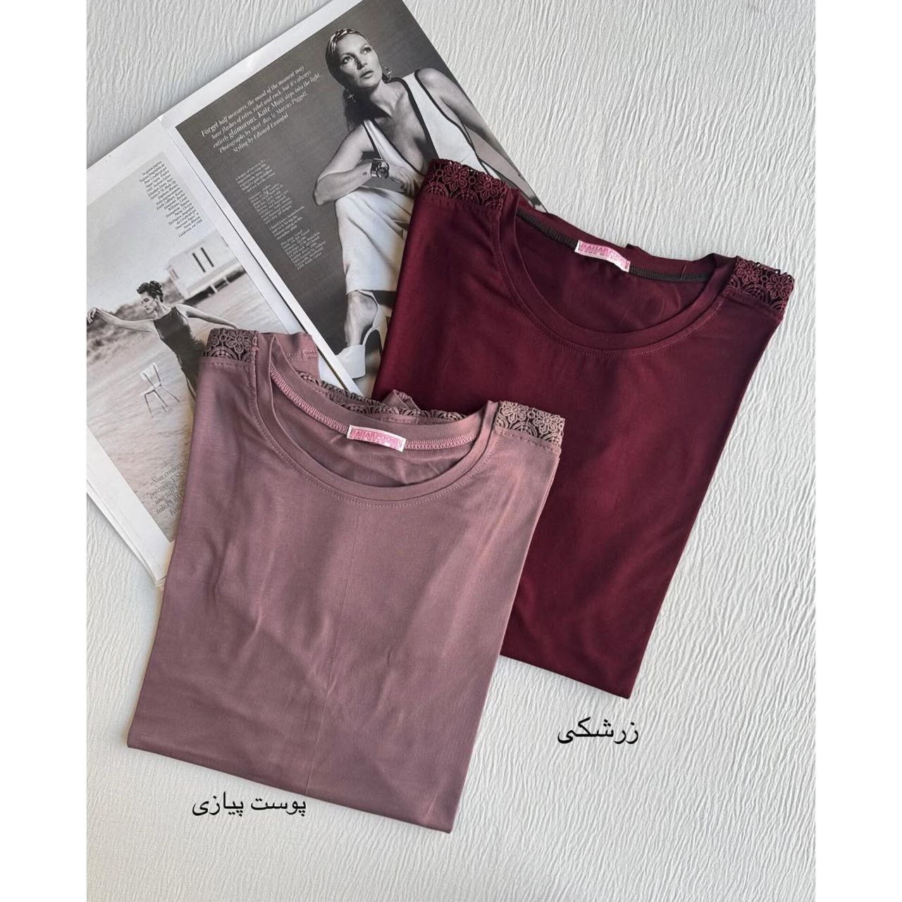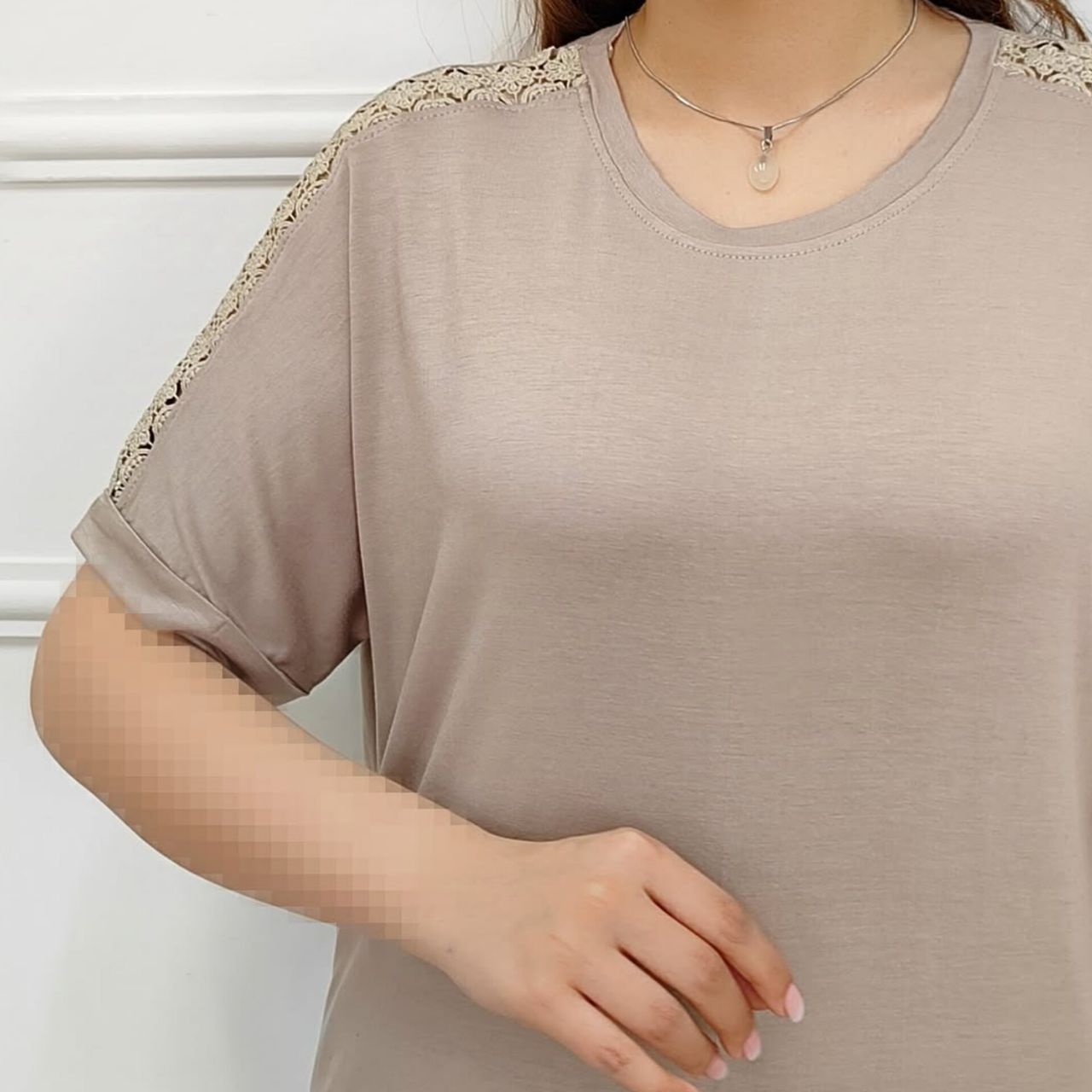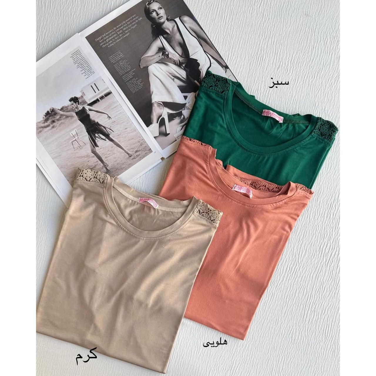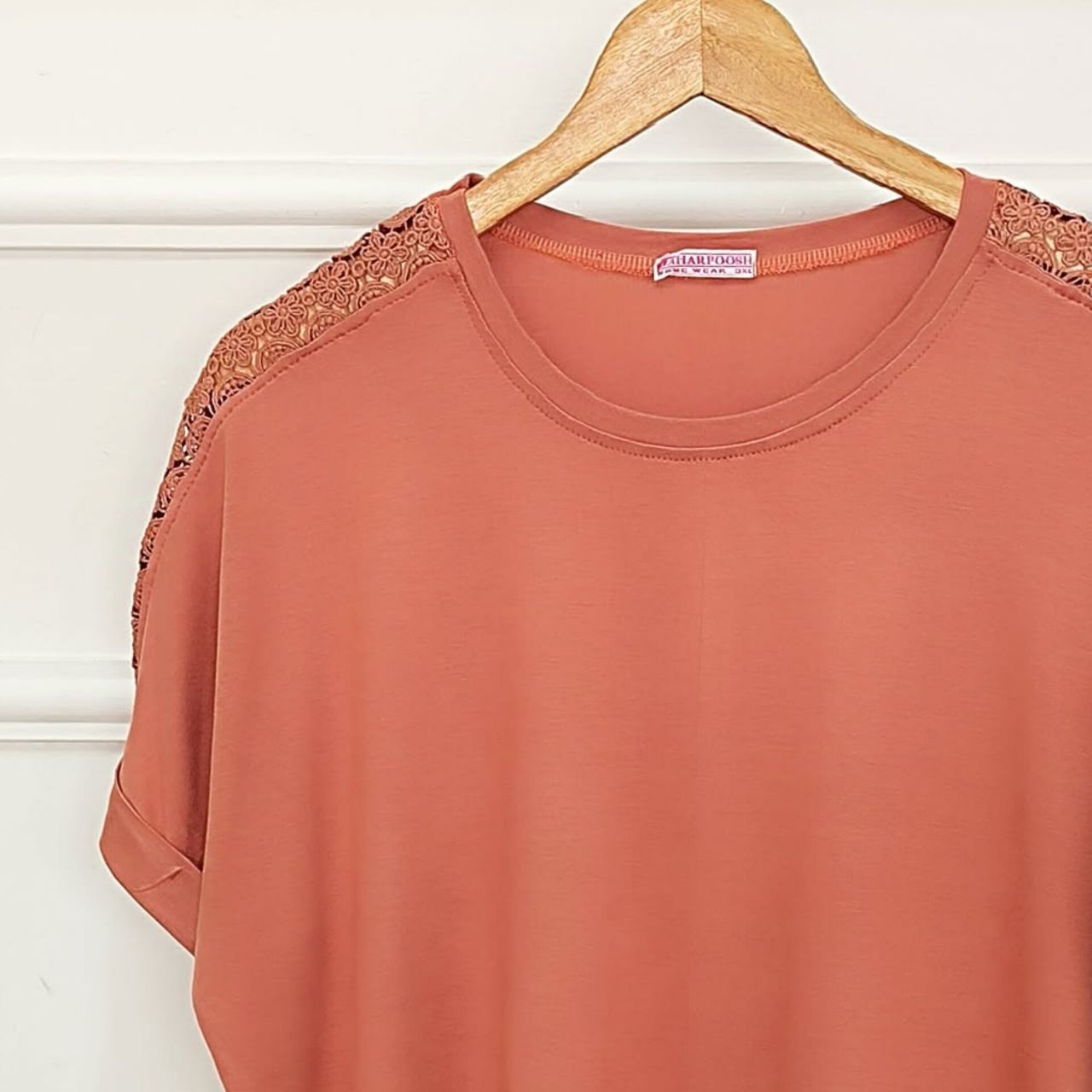 تیشرت سرشانه گیپور زنانه