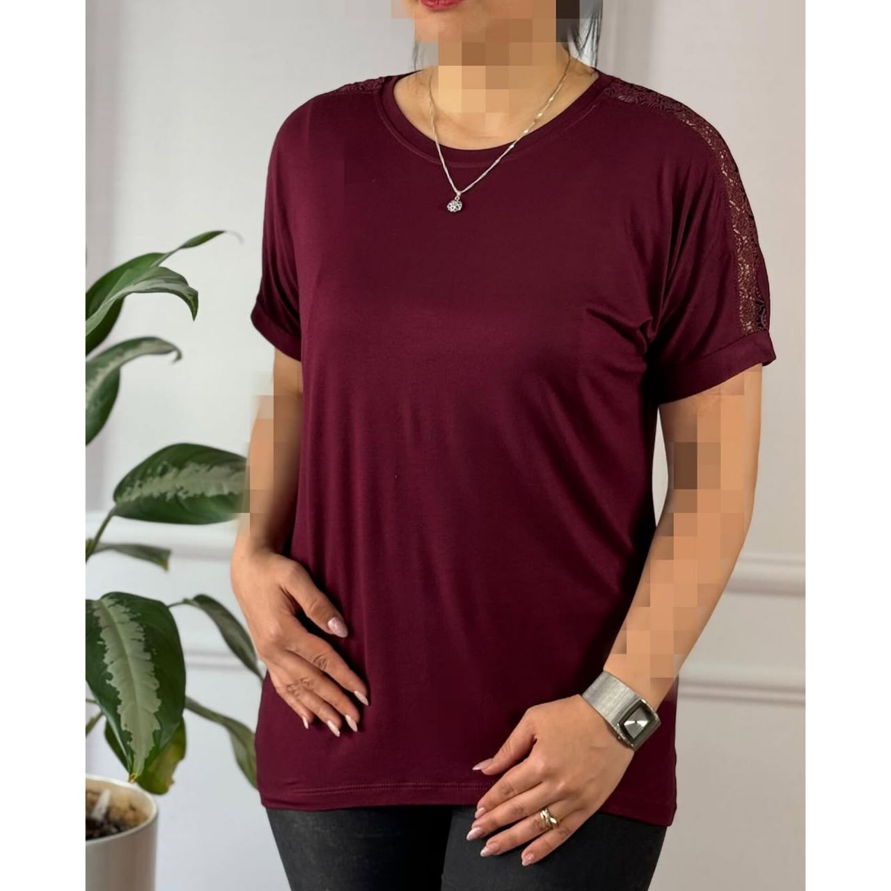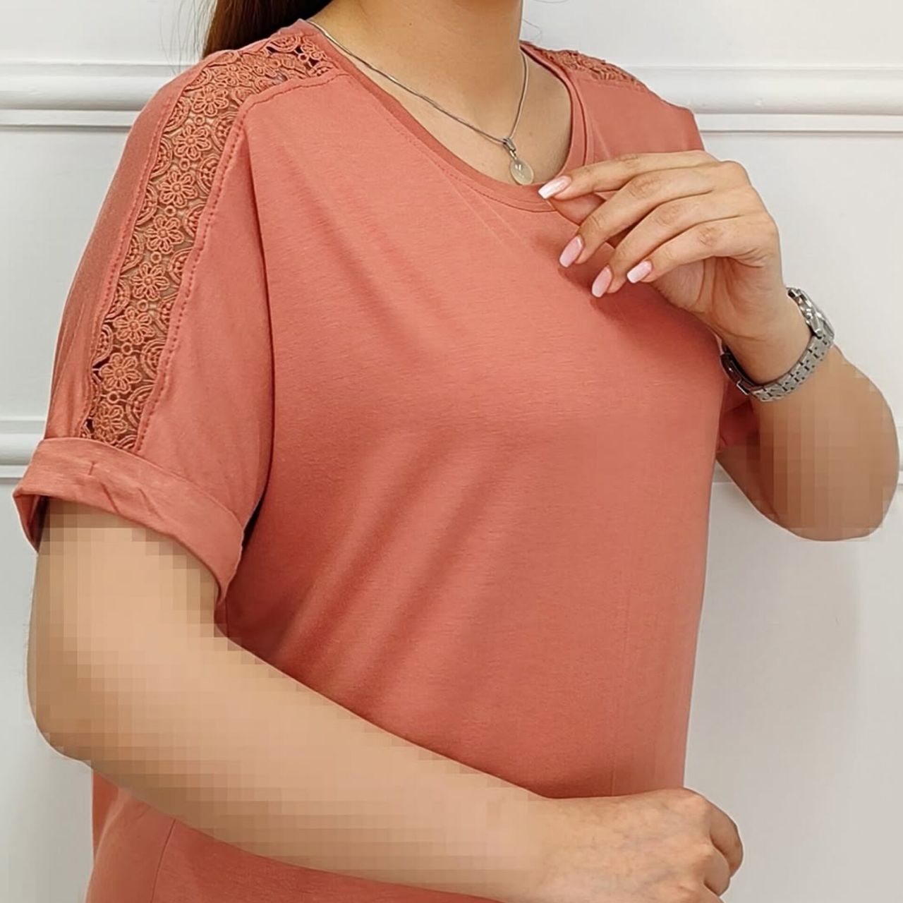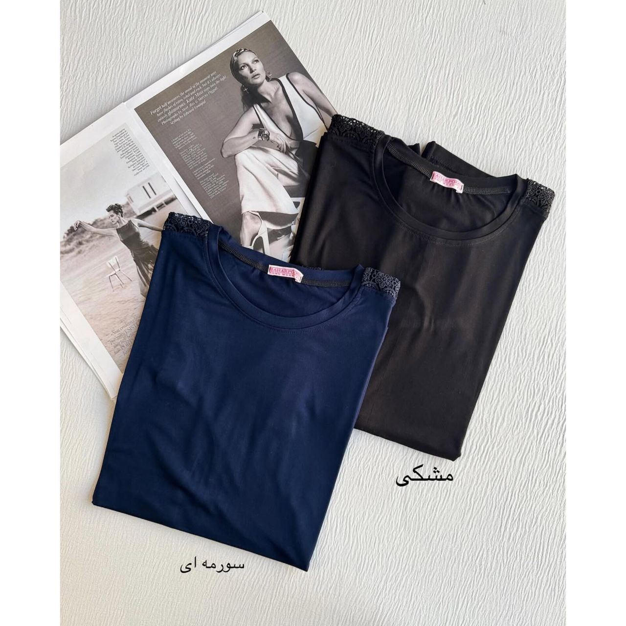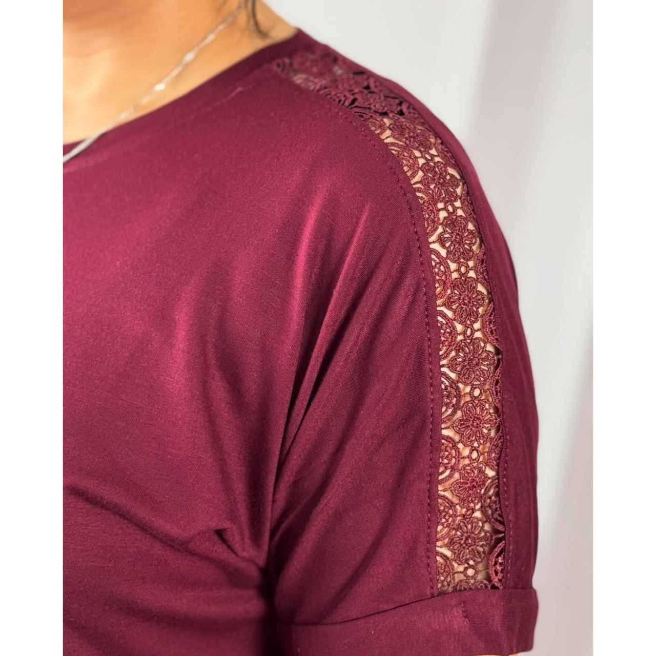 تیشرت سرشانه گیپور زنانه